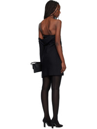 Plain-woven stretch wool-blend minidress. · Asymmetrical and draped construction · Integrated bodysuit-style jersey lining · Straight neck · Logo embroidered at front · Concealed zip closure at side seam · Zip vent at sleeve Supplier color: Black Body: 51% polyester, 41% wool, 4% nylon, 4% elastane. Trim: 100% cotton. Lining: 86% viscose, 10% nylon, 4% elastane. Made in France 252783F052013