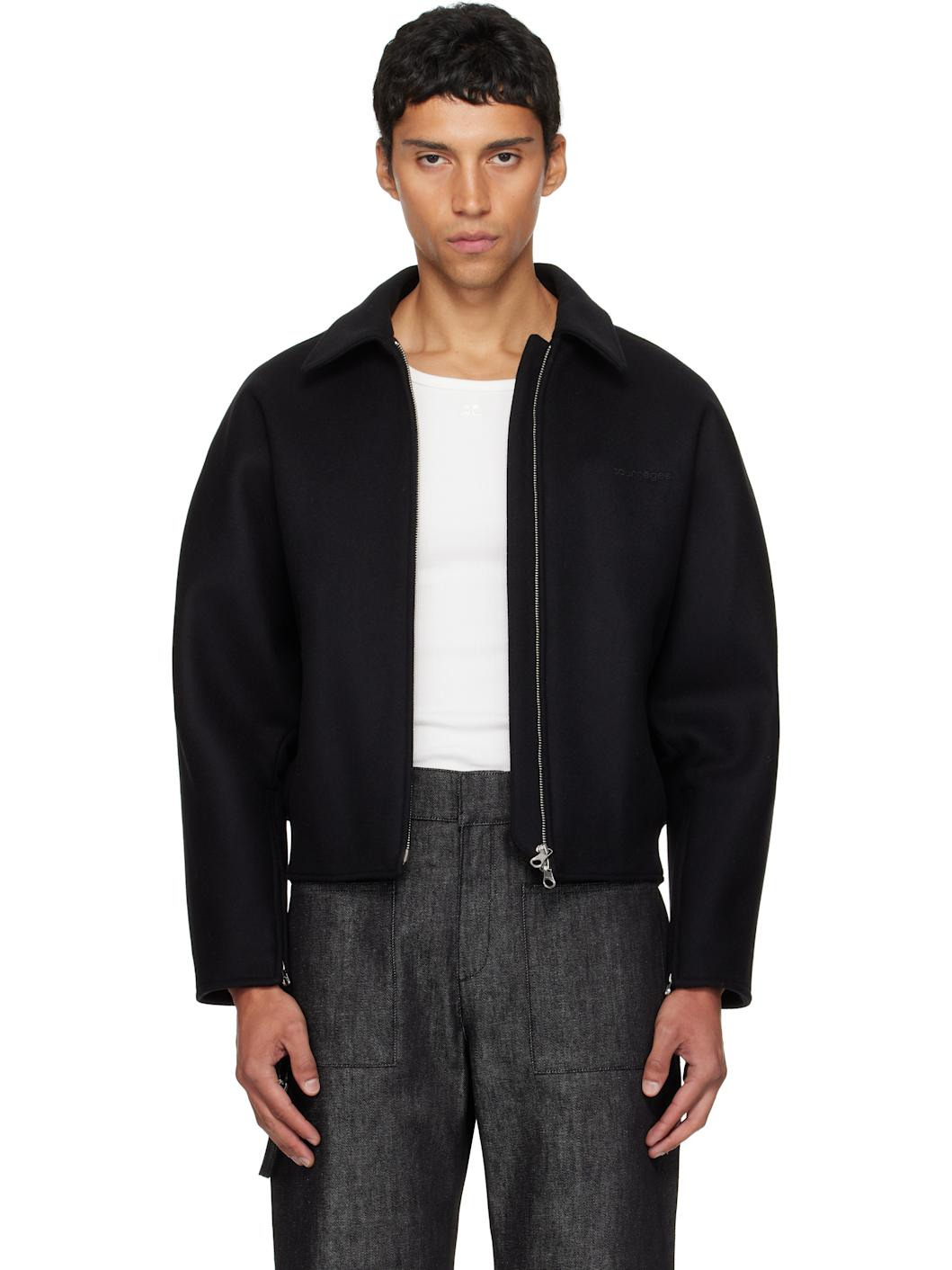 Black Embroidered Wool Bomber Jacket