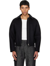 Wool- and silk-blend melton bomber jacket. · Spread collar · Two-way zip closure · Logo embroidered at chest · Zip pockets at waist · Dolman sleeves · Press-stud flap pocket at sleeve · Zip vent and press-stud tab at cuffs · Rib-knit back hem · Welt pocket at interior · Full quilted satin lining Supplier color: Black Body: 97% wool, 3% silk. Lining: 90% polyethylene, 10% polyester. Pocket lining: 100% viscose. Made in Latvia 252783M180005