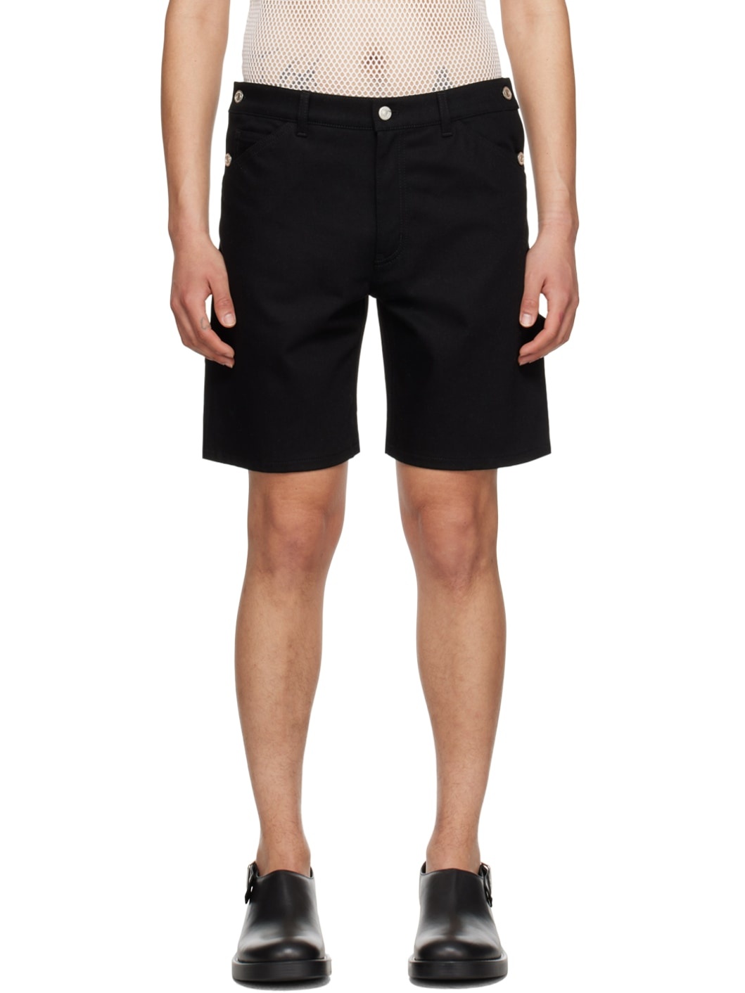 Stretch denim shorts. · Belt loops · Four-pocket styling · Zip-fly · Adjustable button vents at outseams · Logo embroidered at back pocket · Cinch strap and patch pockets at back · Partial plain-woven lining · Logo-engraved silver-tone hardware Supplier color: Black Body: 98% cotton, 2% elastane. Lining: 65% polyester, 35% cotton. Made in Italy 241783M193001