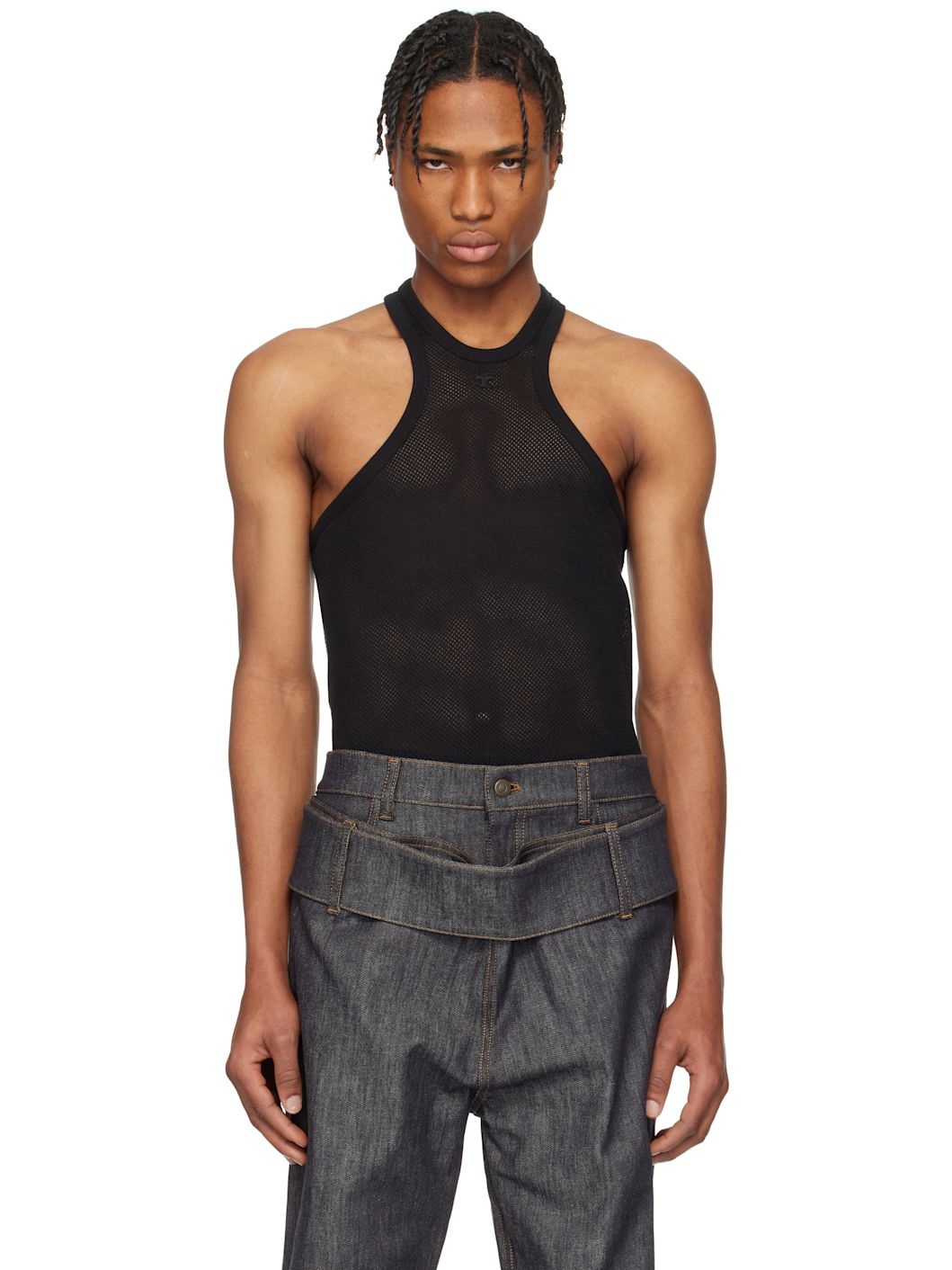 Black Scuba Mesh Tank Top