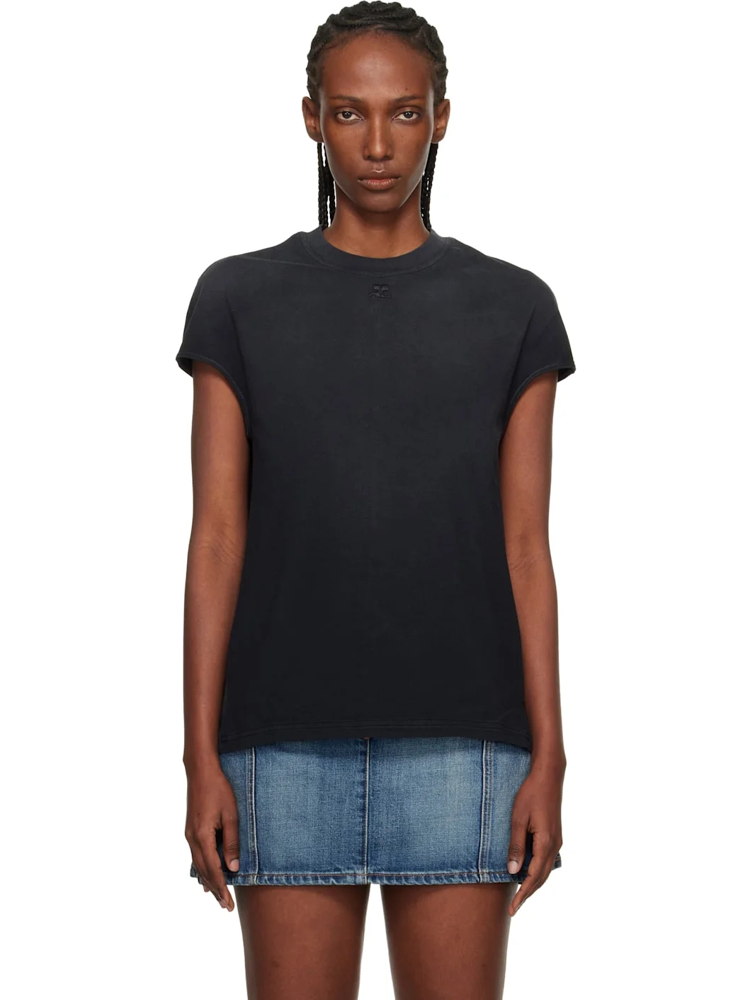 Cotton jersey T-shirt. · Fading throughout · Loose-fit · Rib-knit crewneck · Logo embroidered at chest · Tennis-tail hem · Central seam at back Supplier color: Black Body: 100% cotton. Trim: 93% cotton, 7% elastane. Made in Portugal 261783F110008