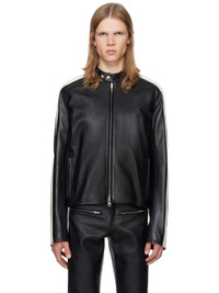 Grained lambskin jacket. · Paneled construction · Adjustable press-stud tab at band collar · Two-way zip closure · Logo applique at chest · Zip pockets · Zip vent at cuffs · Adjustable press-stud tabs at back waist · Welt pocket at interior · Full cupro satin lining Supplier color: Black Body: 100% lambskin. Lining: 100% cupro. Made in Turkey 242783M181000