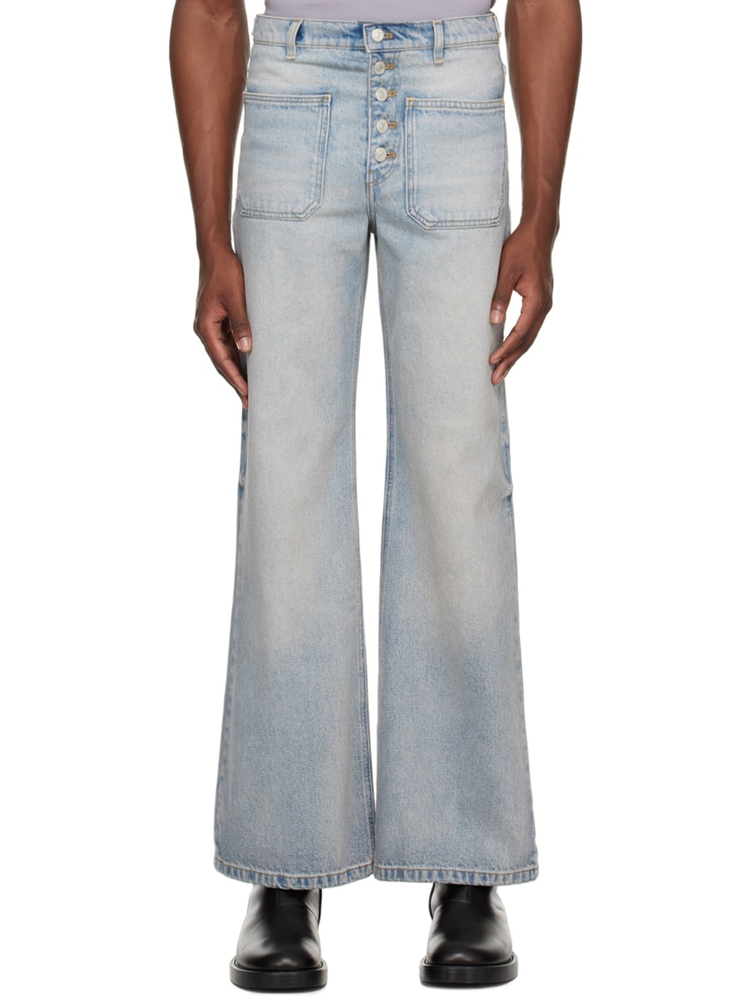 Non-stretch denim jeans. Fading throughout. · Belt loops · Four-pocket styling · Button-fly · Adjustable button tab at back waistband · Logo embroidered at back pocket · Logo-engraved silver-tone hardware Supplier color: Light blue wash 100% cotton. Made in Tunisia 241783M186001