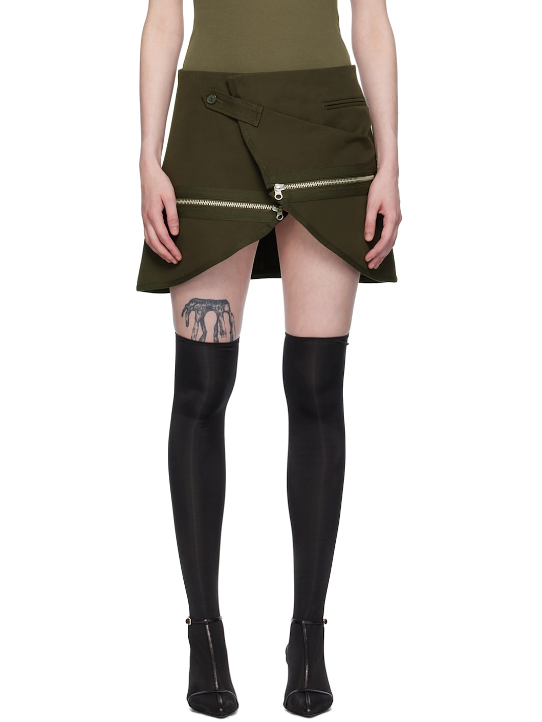 Cotton Bedford cord skirt. Canvas and herringbone trim throughout. · Layered and wrap construction · Pleat at offset button closure · Welt pocket at front · Zip vents at front and back waist · Vented asymmetrical hem · Logo-engraved silver-tone hardware Supplier color: Mud brown 100% cotton. Made in Portugal 241783F090022