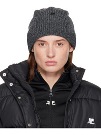 Rib-knit merino wool beanie. Embroidered logo patch at face. Supplier color: Black/Grey 100% merino wool. Made in Italy 252783F014000