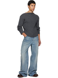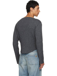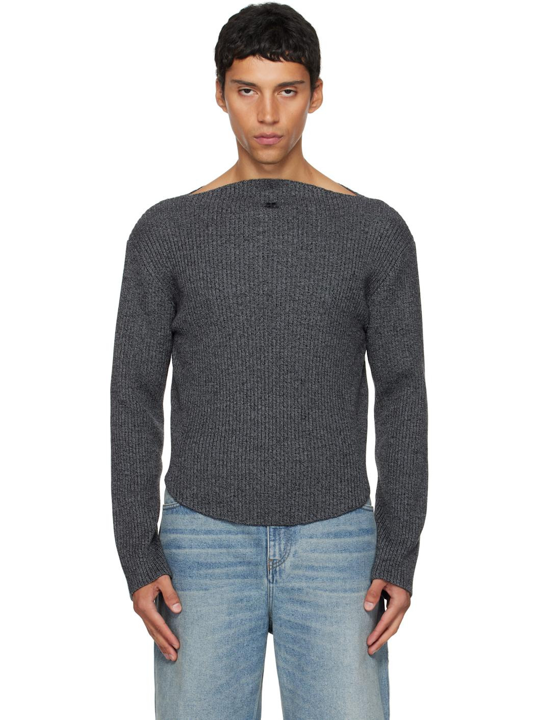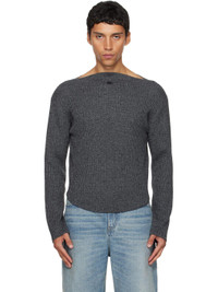 Rib-knit extrafine merino wool sweater. · Boatneck · Logo embroidered at chest · Round hem · Dropped shoulders Supplier color: Black/Grey 100% extrafine merino wool. Made in Italy 252783M201001
