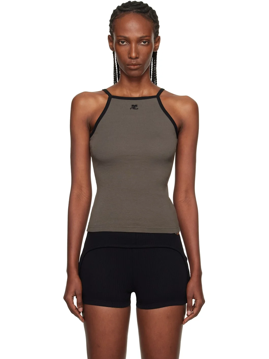 Cotton jersey tank top. · Rib-knit straight neck, armscyes, and spaghetti straps · Logo embroidered at chest Supplier color: Carbon/Black Body: 100% cotton. Trim: 100% cotton. Made in Portugal 261783F111010