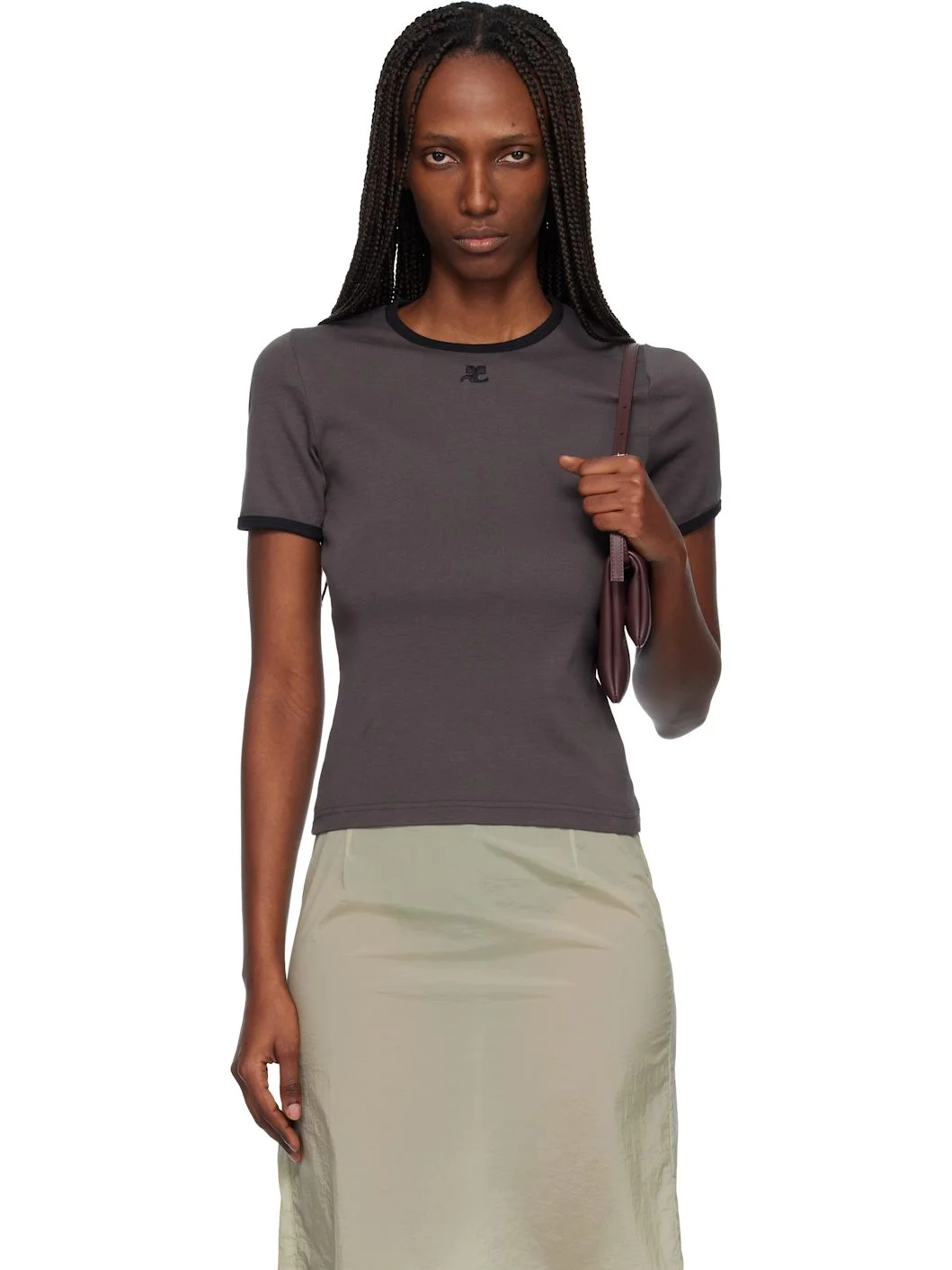 Cotton jersey T-shirt. · Rib-knit crewneck and cuffs · Logo embroidered at chest Supplier color: Bitumen/Black 100% cotton. Made in Portugal 252783F110003