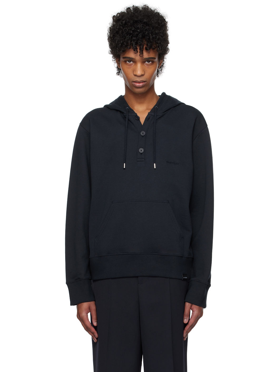 French terry hoodie. · Drawstring at hood · Three-button placket · Logo embroidered at chest · Kangaroo pocket · Rib-knit hem and cuffs · Logo flag at hem · Dropped shoulders Supplier color: Navy 100% cotton. Made in Portugal 251783M202002