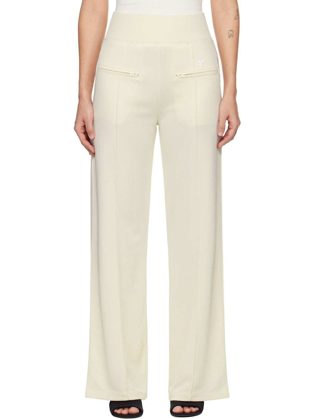 Polyester interlock jersey trousers. · Rib-knit waistband · Three-pocket styling · Embroidered logo at front · Pinched seams at front and back · Logo flag at back pocket Supplier color: Natural Body: 100% polyester. Trim: 90% polyester, 10% elastane. Made in Portugal 251783F087012