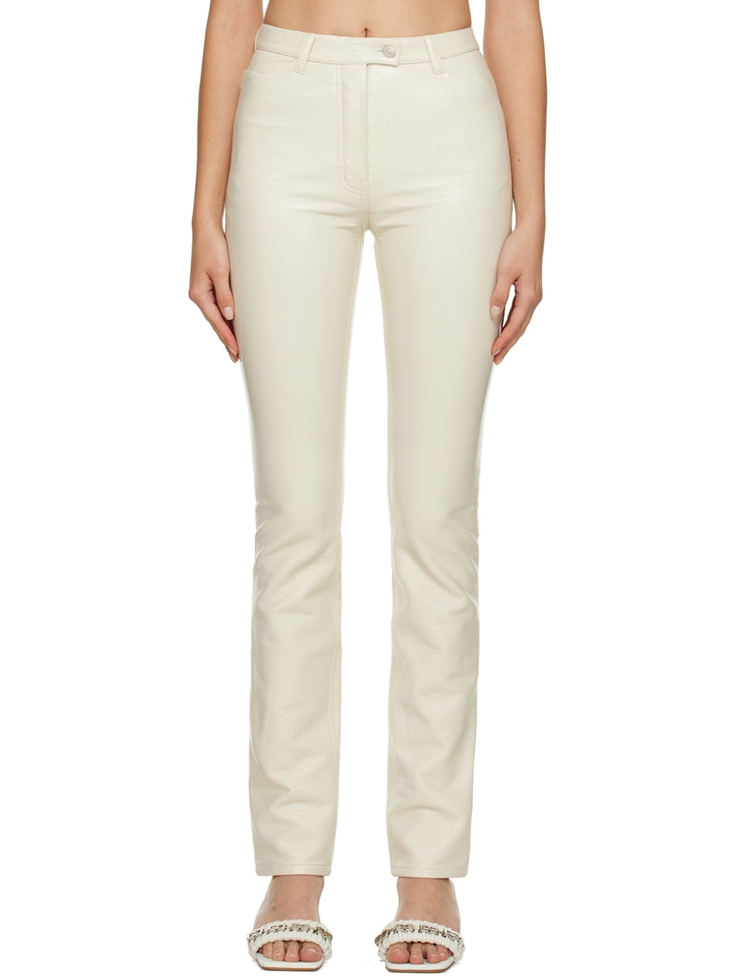 Slim-fit faux-leather trousers. · Low-rise · Belt loops · Five-pocket styling · Zip-fly · Full bonded jersey lining · Logo-engraved silver-tone hardware Supplier color: Off-white Body: 88% cotton, 10% polyurethane, 2% elastane. Made in Serbia 222783F087000