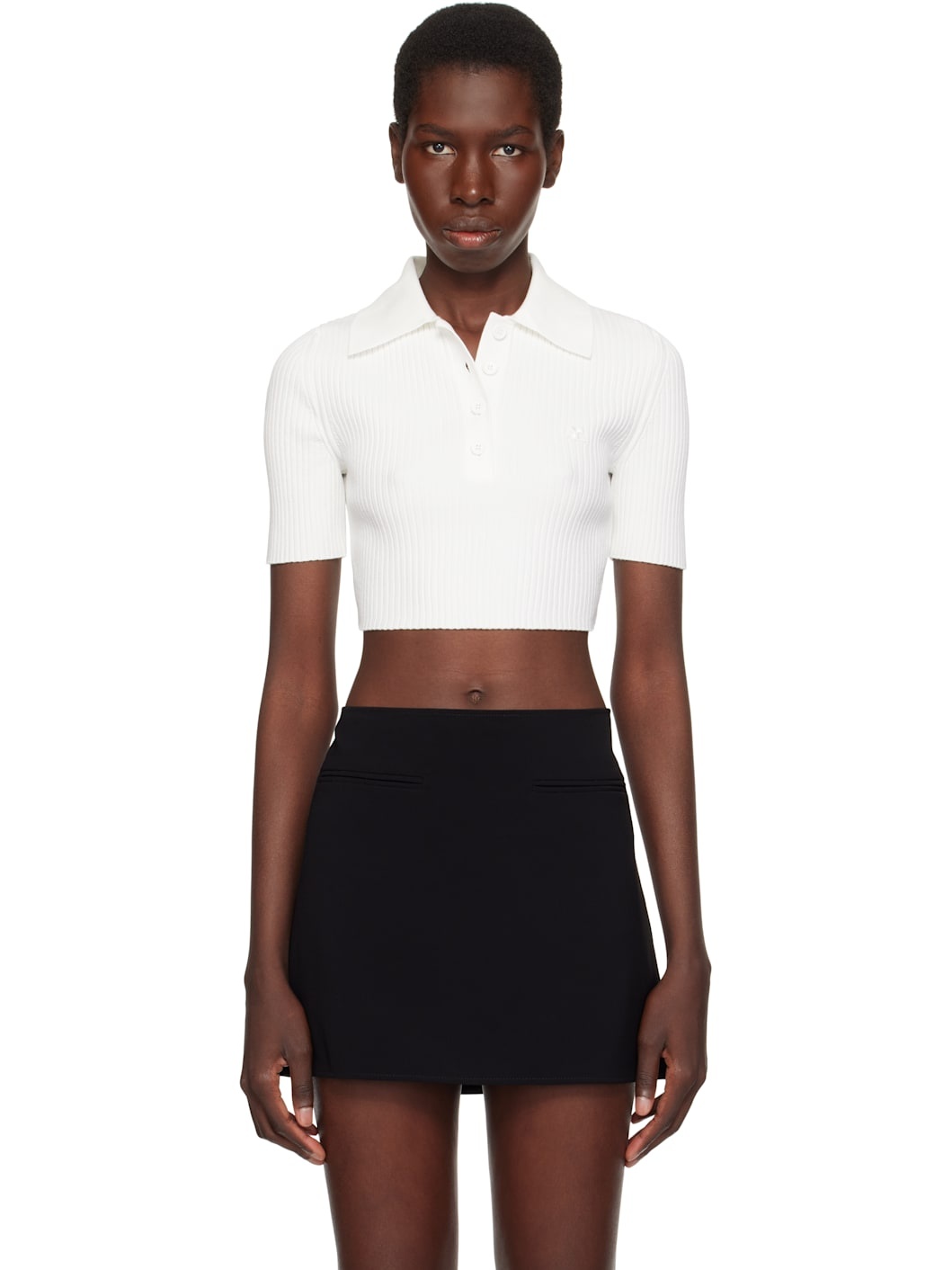 Rib-knit viscose-blend polo. · Spread collar · Four-button placket · Logo embroidered at chest · Cropped hem Supplier color: Heritage white 70% viscose, 30% polyester. Made in Bulgaria 251783F108007
