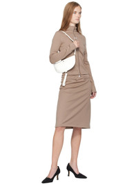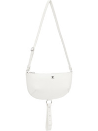 Grained calfskin shoulder bag. · Adjustable shoulder strap · Embossed logo and logo hardware at face · Adjustable and detachable wristlet at base · Zip closure · Card slot at interior · Microsuede lining · H5.5" x W10" x D2.5" Supplier color: Off white Calfskin. Made in Italy 252783F048003