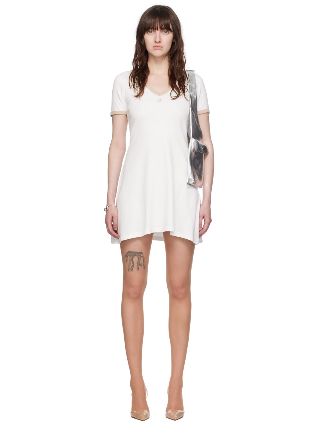 Cotton jersey dress. · Rib knit V-neck and cuffs · Logo embroidered at chest Supplier color: White heritage/Sand 100% cotton. Made in Portugal 241783F052027