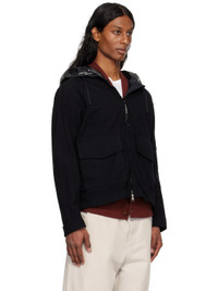Garment-dyed nylon jersey jacket. · Acetate lenses and drawstring at hood · Two-way zip closure extends to balaclava-style hood · Flap pockets · Concealed drawstring at hem · Flap pocket at sleeve · Adjustable press-stud tab at cuffs · Welt pocket at interior · Unlined Supplier color: Black 100% nylon. Made in Romania 251357M180039