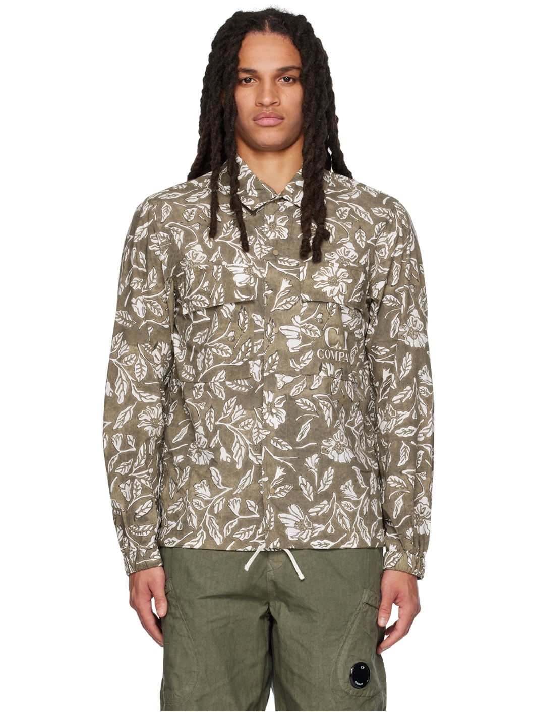 Garment-dyed cotton poplin shirt. Floral pattern and logo printed throughout. · Spread collar · Press-stud closure · Flap pockets · Drawstring at hem · Elasticized cuffs Supplier color: Lead gray 100% cotton. Made in Tunisia 231357M192050