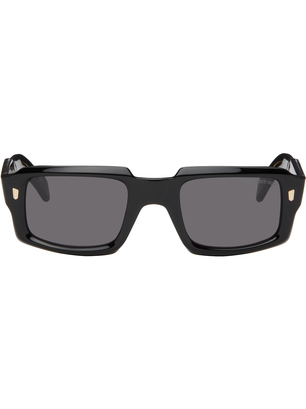 Handcrafted rectangular acetate-frame sunglasses. · Gray lenses · 100% UVA/UVB protection · Integrated nose pads · Exposed core wire at inner arms · Includes case · Size: 53.24 150 Supplier color: Black Acetate. Made in Italy 252331M134011