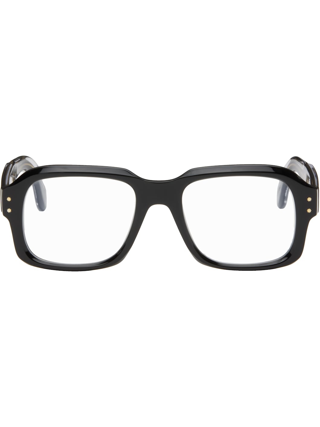 Handcrafted square acetate-frame optical glasses. · Integrated nose pads · Core wire at temples · Includes pouch · Size: 52.19 145 Supplier color: Black Acetate. Made in Italy 252331M133006