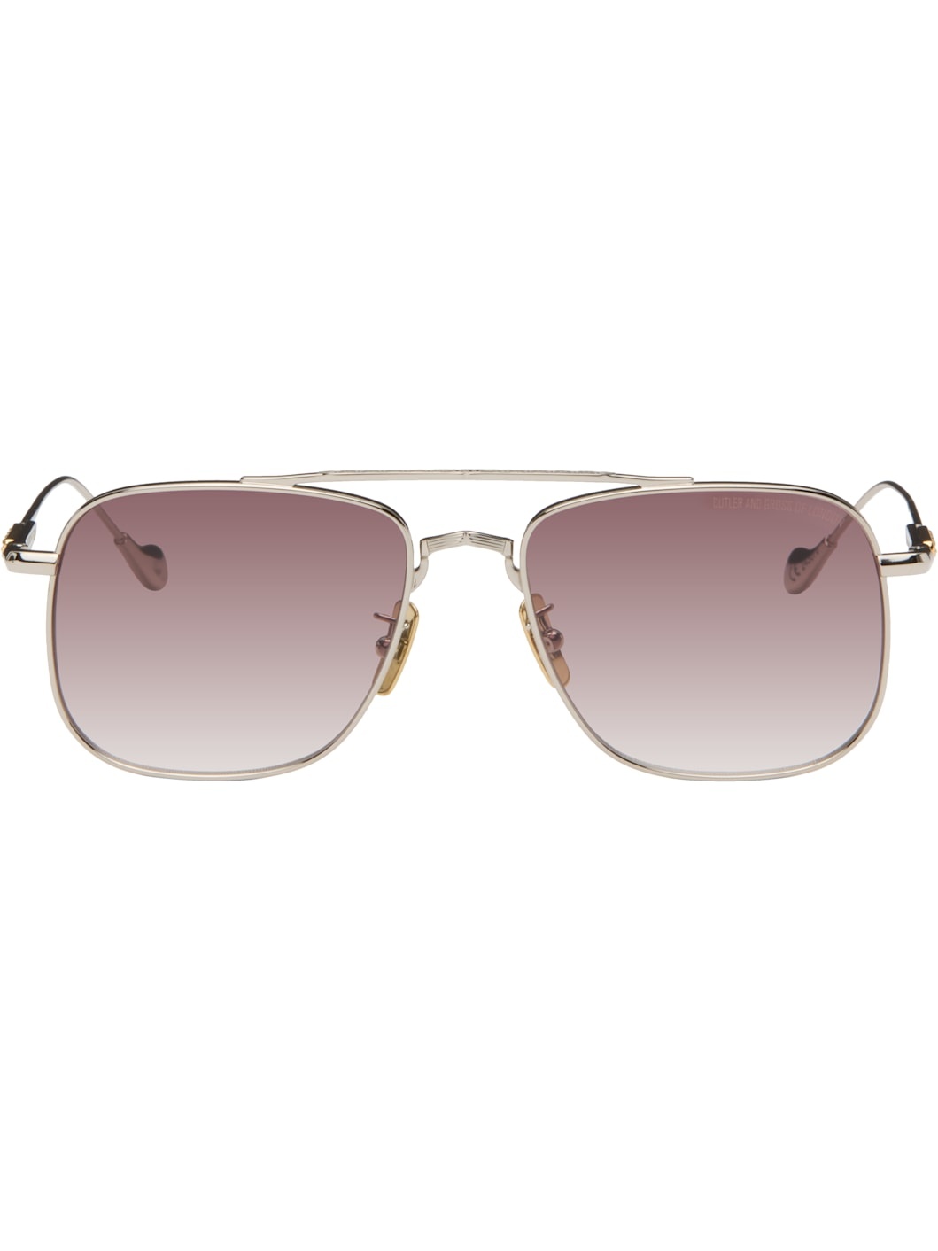 Handcrafted aviator-style titanium-frame sunglasses. · Gradient purple lenses · 100% UVA/UVB protection · Logo engraved at top bar · Adjustable metal nose pads · Graphic hardware at temples · Includes case · Size: 54.17 150 Part of the Cutler and Gross x The Great Frog collaboration. Supplier color: Silver Titanium. Made in Japan 252331M134000