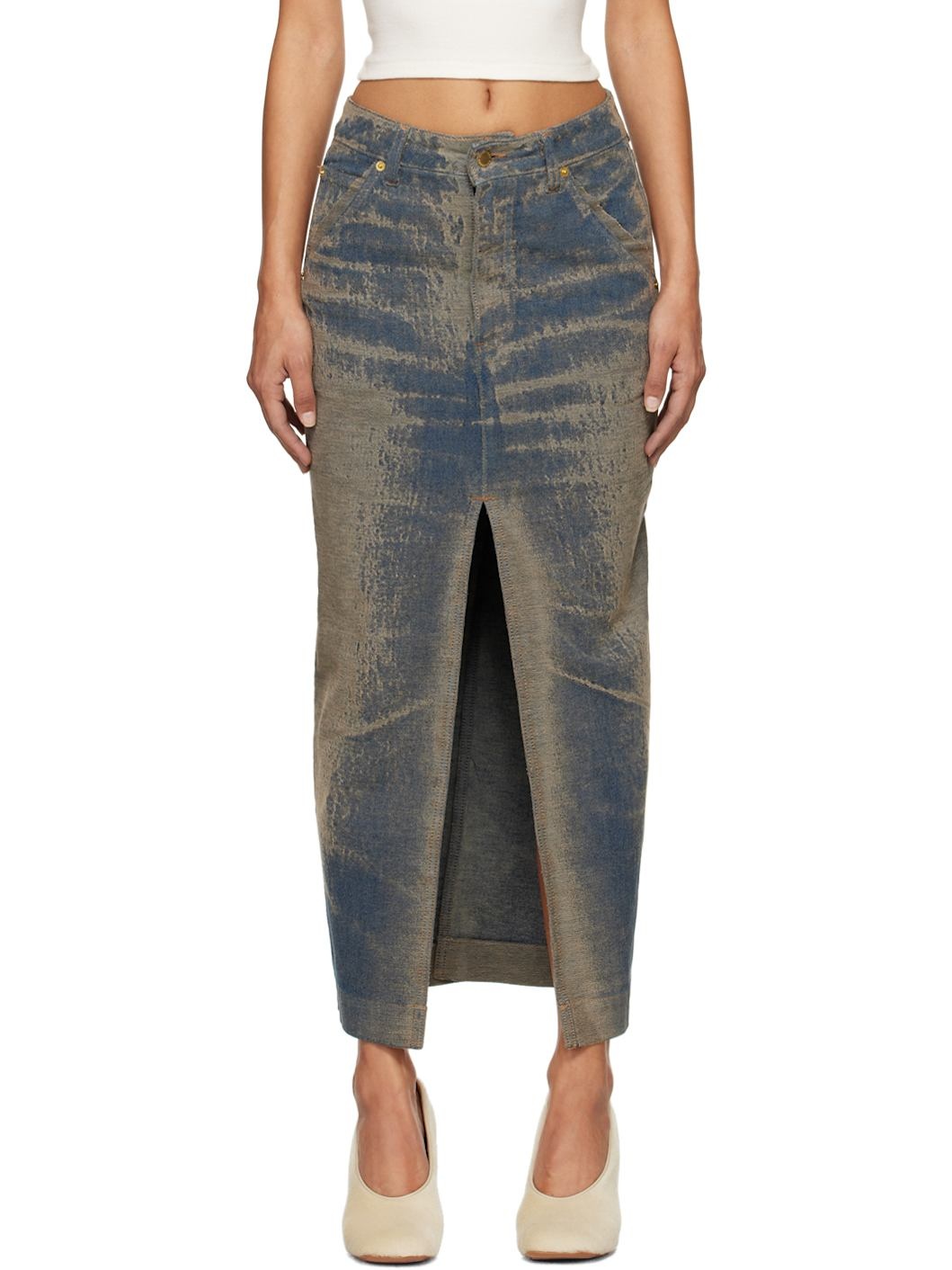 Blue Erika Jacquard Denim Midi Skirt
