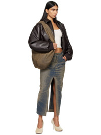 Stretch denim skirt. Jacquard pattern throughout. · Belt loops · Five-pocket styling · Zip-fly · Central vent at front and back hem · Leather logo patch at back waistband · Logo-engraved gold-tone hardware · Contrast stitching in tan Supplier color: Faded sand wash 36% recycled polyester, 33% recycled cotton, 30% cotton, 1% elastane. Made in Italy 242589F092001