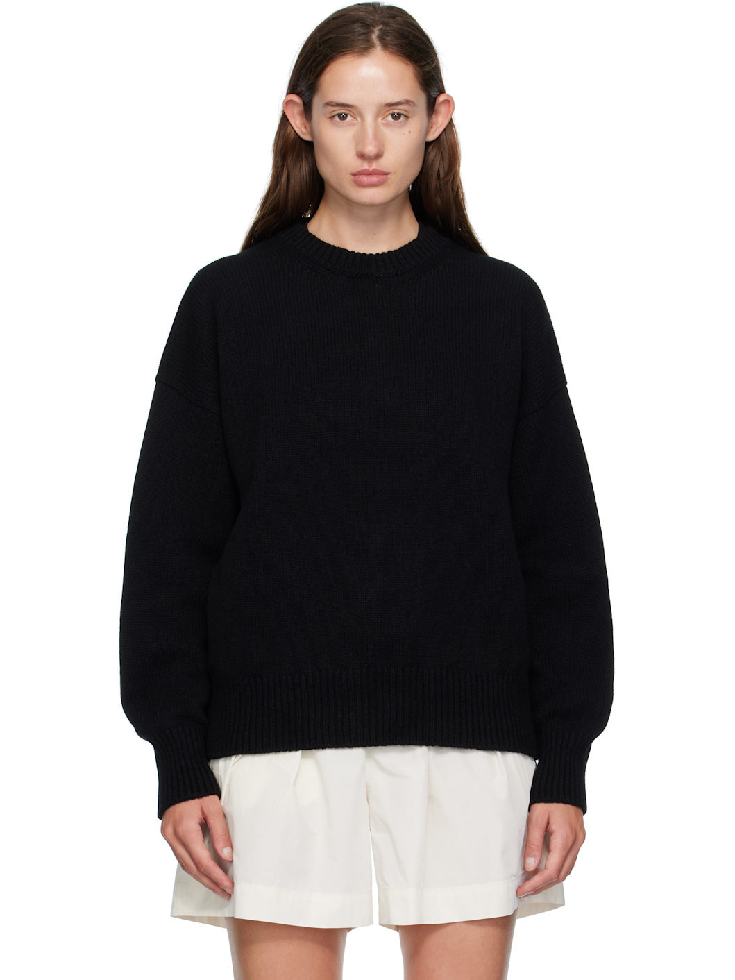Knit virgin wool sweater. · RWS-certified virgin wool · Fully fashioned construction · Rib-knit crewneck, hem, and cuffs · Dropped shoulders Supplier color: Black 100% virgin wool. Made in Ireland 252255F096009