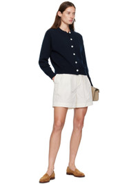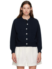 Knit lambswool cardigan. · Fully fashioned construction · Rib-knit crewneck, hem, and cuffs · Button closure · Dropped shoulders · Trochus shell hardware Supplier color: Navy 100% lambswool. Made in United Kingdom 252255F095002