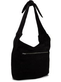 Upcycled goatskin suede tote in black. · Adjustable self-tie crossbody strap · Logo plaque at face · Zip pocket at back face · Magnetic press-stud closure · Zip pocket at interior · Recycled polyester twill lining · H16" x W12" x D4" Supplier color: Black Body: 100% upcycled goatskin. Lining: 100% recycled polyester. Made in India 251158M172000