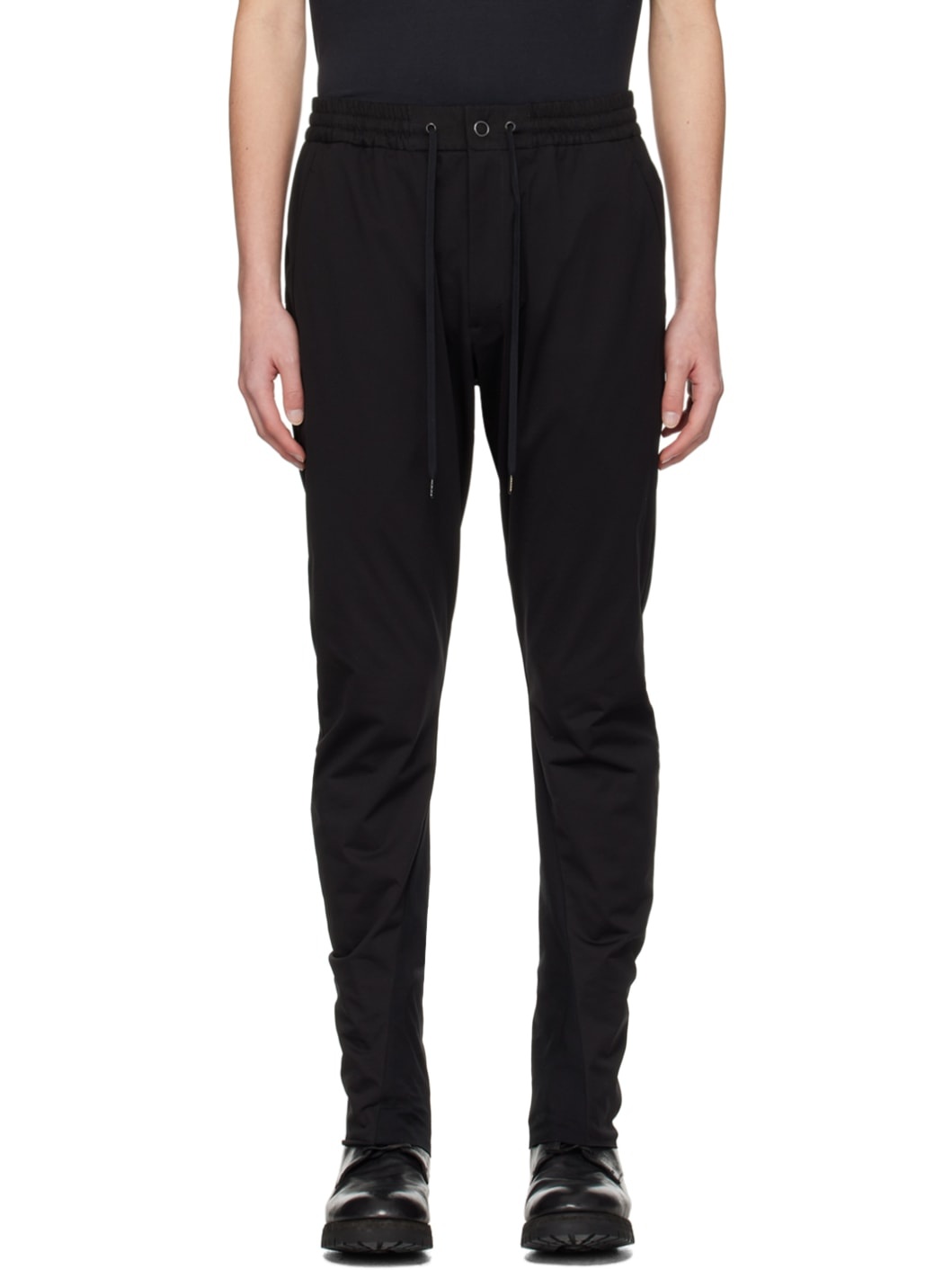 Polyester crepe trousers. · Drawstring at elasticized waistband · Three-pocket styling · Zip-fly · Raw edge at cuffs Supplier color: Black