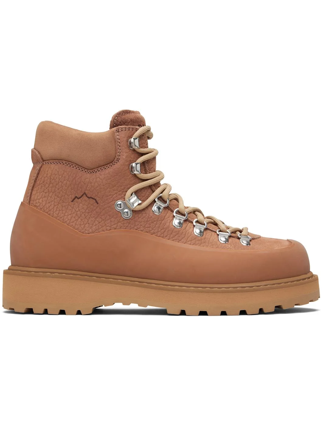 Ankle-high grained leather boots. · Lace-up closure · Padded tongue and collar · Logo embossed at outer side · Rubber trim at welt · Foam rubber midsole · Treaded rubber sole Supplier color: Cognac leather Upper: leather. Sole: rubber. Made in Italy 261396M255010