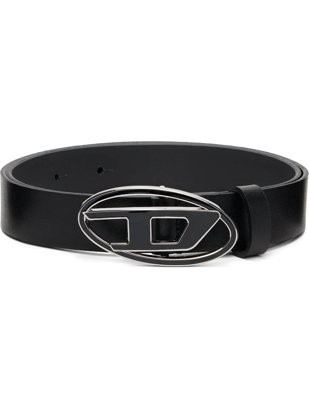 Buffed leather belt. · Keeper loop at length · Enameled logo hardware at post-stud fastening · Silver-tone hardware · W1" Supplier color: Black 100% leather. Made in Romania 261001F001001