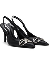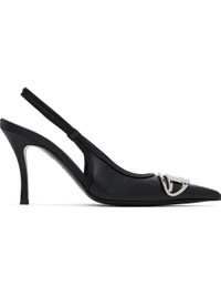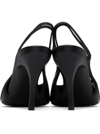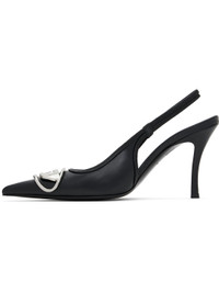 Grained nappa leather heels in black. · Pointed toe · Silver-tone logo hardware at vamp · Elasticized slingback strap · Grained leather lining · Logo stamp at padded leather footbed · Covered stiletto heel with rubber injection · Leather sole · Heel: H3.5" Supplier color: Black Upper: leather. Sole: leather. Made in Italy 251001F122000