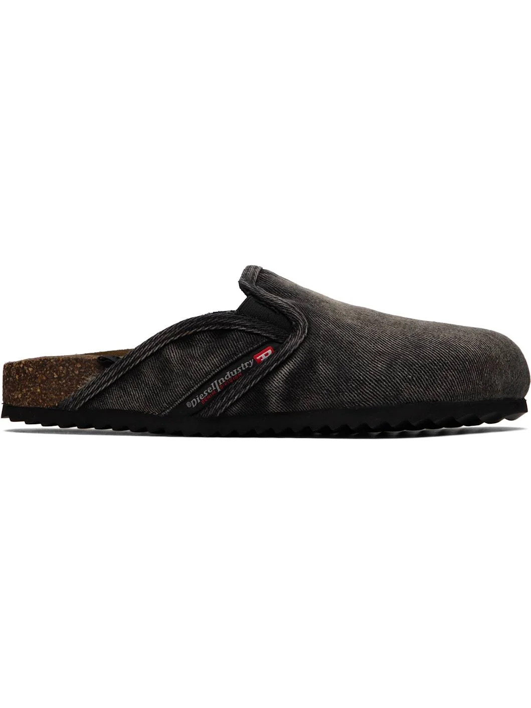 Non-stretch denim slip-on loafers. · Fading and subtle distressing throughout · Elasticized gusset at vamp · Inset logo patch at outer side · Molded suede footbed · Cork midsole · Thermoplastic rubber sole Supplier color: Black Upper: cotton. Sole: cork, rubber. Made in Viet Nam 252001M231002