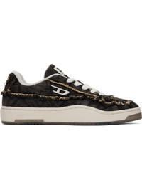 Low-top non-stretch denim sneakers. · Fading and distressing throughout · Lace-up closure · Logo patch at padded tongue · Padded collar · Logo embroidered at outer side and heel tab · Pique lining · Treaded rubber sole Supplier color: Black Upper: cotton. Sole: rubber. Made in Viet Nam 252001M237008