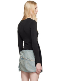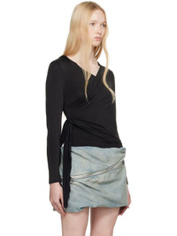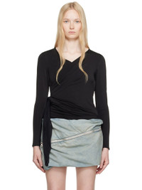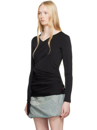 Stretch acetate jersey T-shirt. · Layered construction · V-neck · Draping at front · Knotted accent and gathering at side seam · Logo flag at side seam Supplier color: Black 91% acetate, 9% elastane. Made in Bulgaria 251001F110036