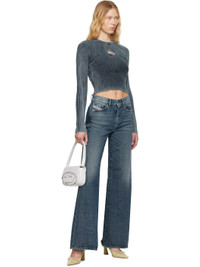 Wide-leg stretch cotton-blend denim jeans. Fading, whiskering, and subtle distressing throughout. · Belt loops · Five-pocket styling · Zip fly · Logo patch at coin pocket · Flared cuffs · Jacron patch at back waistband · Logo-engraved silver-tone hardware Supplier color: Medium blue 68% cotton, 31% lyocell, 1% elastane. Made in Tunisia 251001F069012