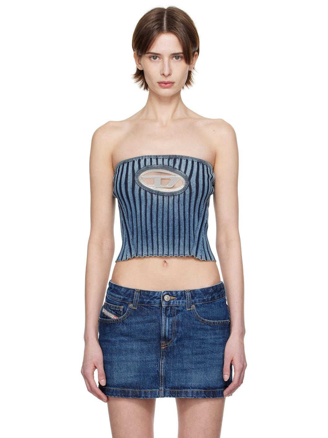 Slim-fit rib-knit stretch cotton-blend bandeau top. · Straight neck · Logo hardware with cutout at chest · Lettuce edge at cropped hem Supplier color: Midnight/ Blue 80% cotton, 18% nylon, 2% elastane. Made in Italy 251001F111000