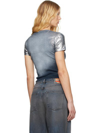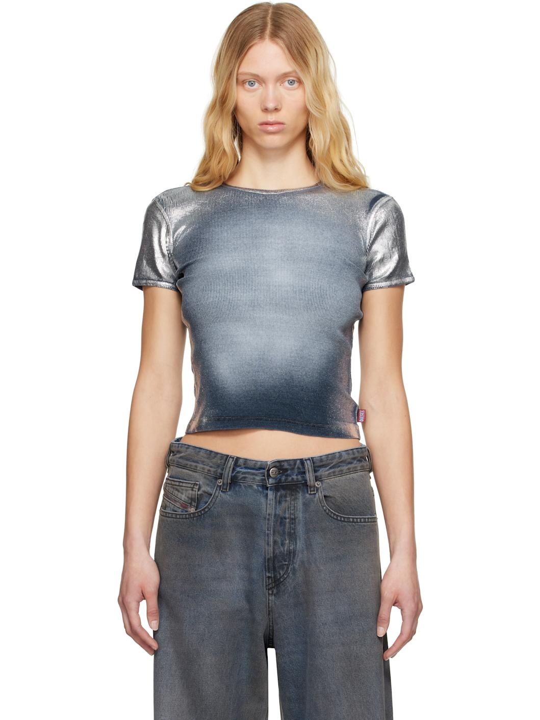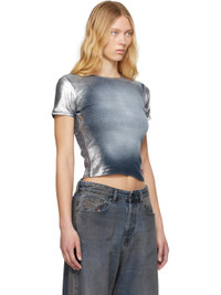Stretch cotton ribbed jersey T-shirt. Spray-dyed metallic fading throughout. · Slim-fit · Crewneck · Cropped hem · Logo flag at side seam Supplier color: Light blue 96% cotton, 4% elastane. Made in Bulgaria 251001F110001
