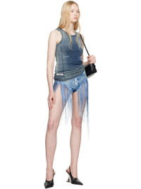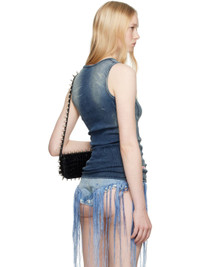Stretch cotton ribbed jersey tank top. Fading and laser-cut whiskering throughout. · Scoop neck · Inset logo patch at side Supplier color: Dark blue 96% cotton, 4% elastane. Made in Bulgaria 251001F111028