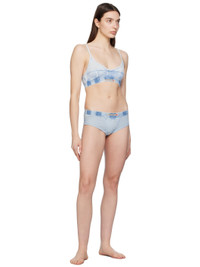 BCI-certified stretch cotton jersey thong. Fading throughout. · Elasticized waistband · Logo patch at front and back Supplier color: Light blue Body: 95% cotton, 5% elastane. Trim 1: 100% cotton. Trim 2: 81% cotton, 11% polyester, 8% spandex. Made in India 241001F081003