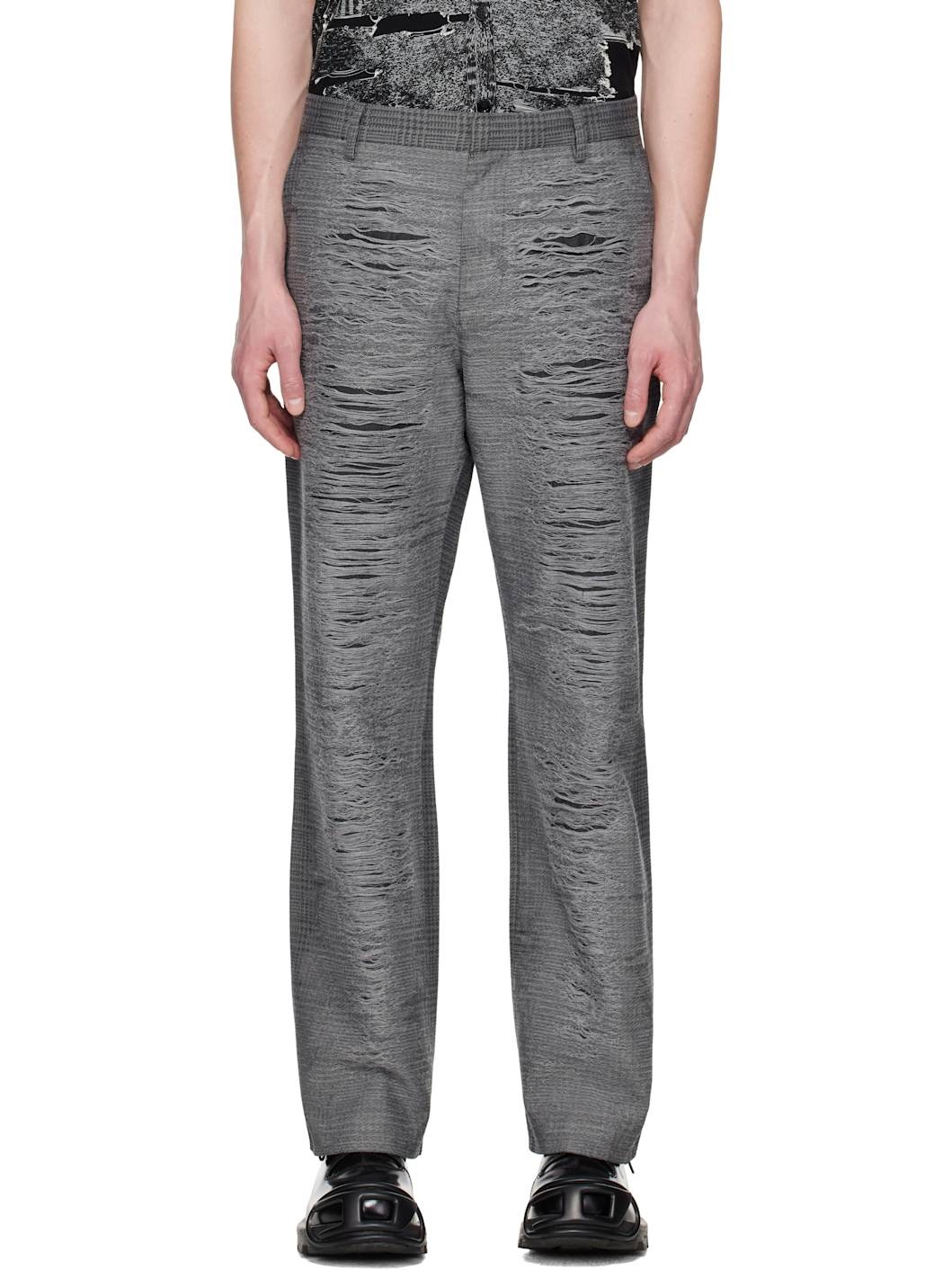 Cotton- and viscose-blend twill trousers. Prince of Wales pattern and distressing throughout. · Belt loops · Four-pocket styling · Zip-fly · Logo embroidered at back Supplier color: Grey 77% cotton, 23% viscose. Made in Italy 251001M191008