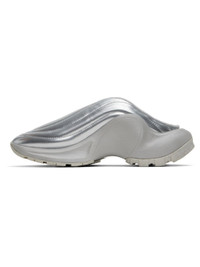Low-top patent faux-leather slip-on sneakers in silver tone. · Quilted and padded · Mesh lining · Logo embossed at foam rubber midsole · Treaded rubber sole Supplier color: Silver Upper: synthetic. Sole: rubber. Made in Viet Nam 251001F128002