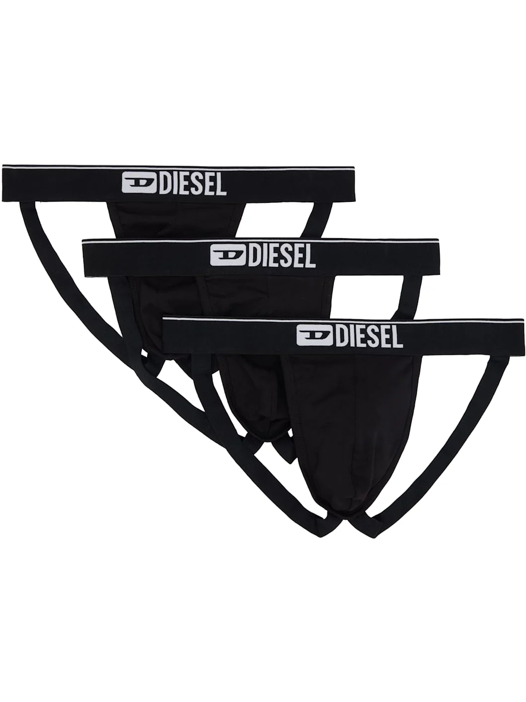 Pack of three stretch cotton jersey jockstraps. Jacquard logo at elasticized waistband. Supplier color: Black Body: 95% cotton, 5% elastane. Trim 1: 56% nylon, 33% polyester, 11% elastane. Trim 2: 58% nylon, 29% polyester, 13% elastane. Made in Bangladesh 261001M217002