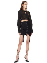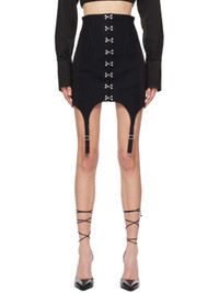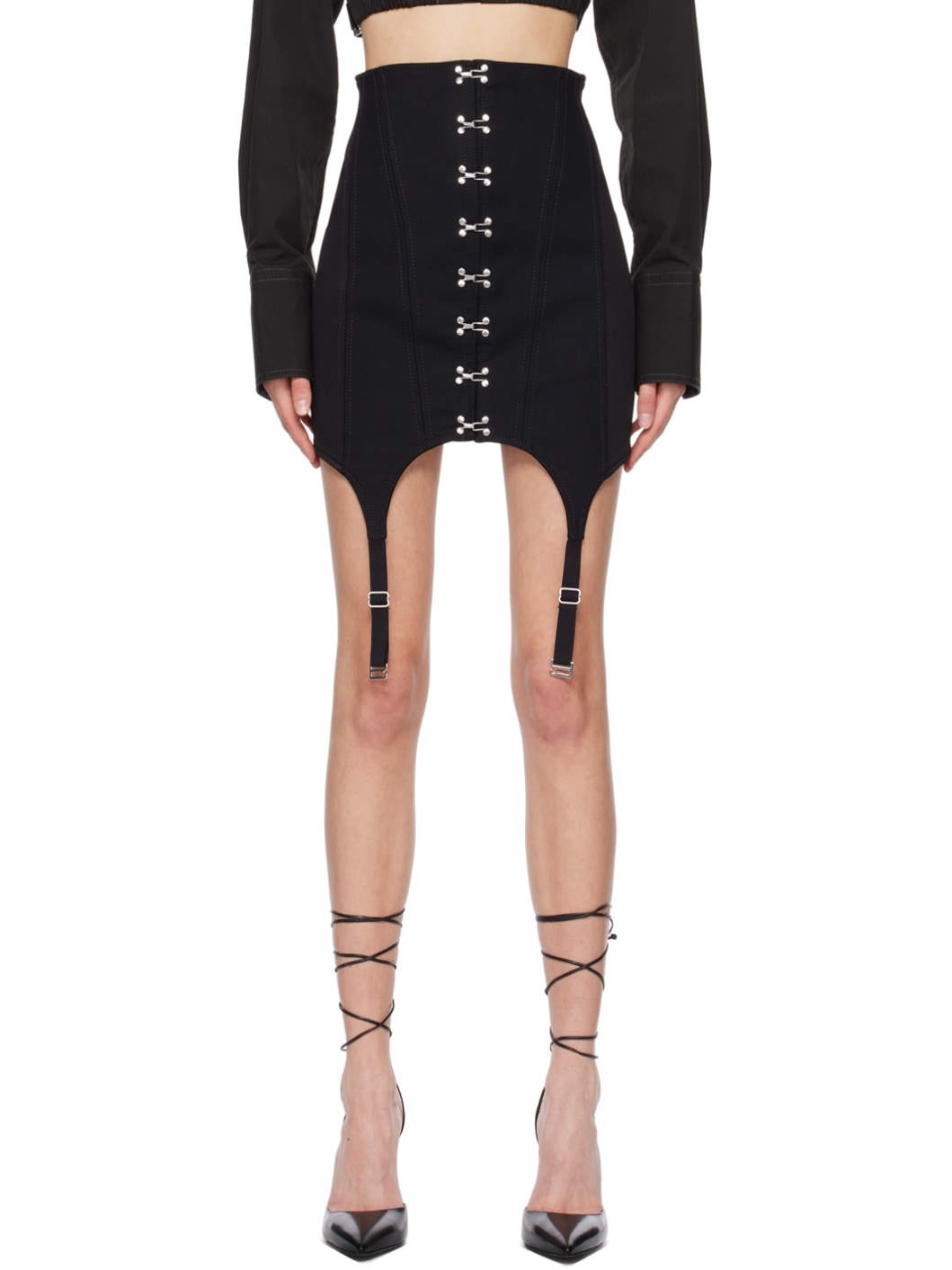 Knit stretch viscose-blend and stretch organic cotton drill skirt. · Paneled construction · Hook-eye closure at front · Adjustable elasticized garter straps at hem Supplier color: Black Body 1: 98% organic cotton, 2% elastane. Body 2: 84% viscose, 12% nylon, 4% elastane. Made in Poland 231417F090013