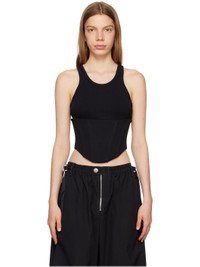 Rib knit stretch organic cotton tank top. · Layered construction · Crewneck · Boning at front · Asymmetric hem · Zip closure at back Supplier color: Black Body 1: 100% organic cotton. Body 2: 98% organic cotton, 2% elastane. Made in Portugal 232417F111014