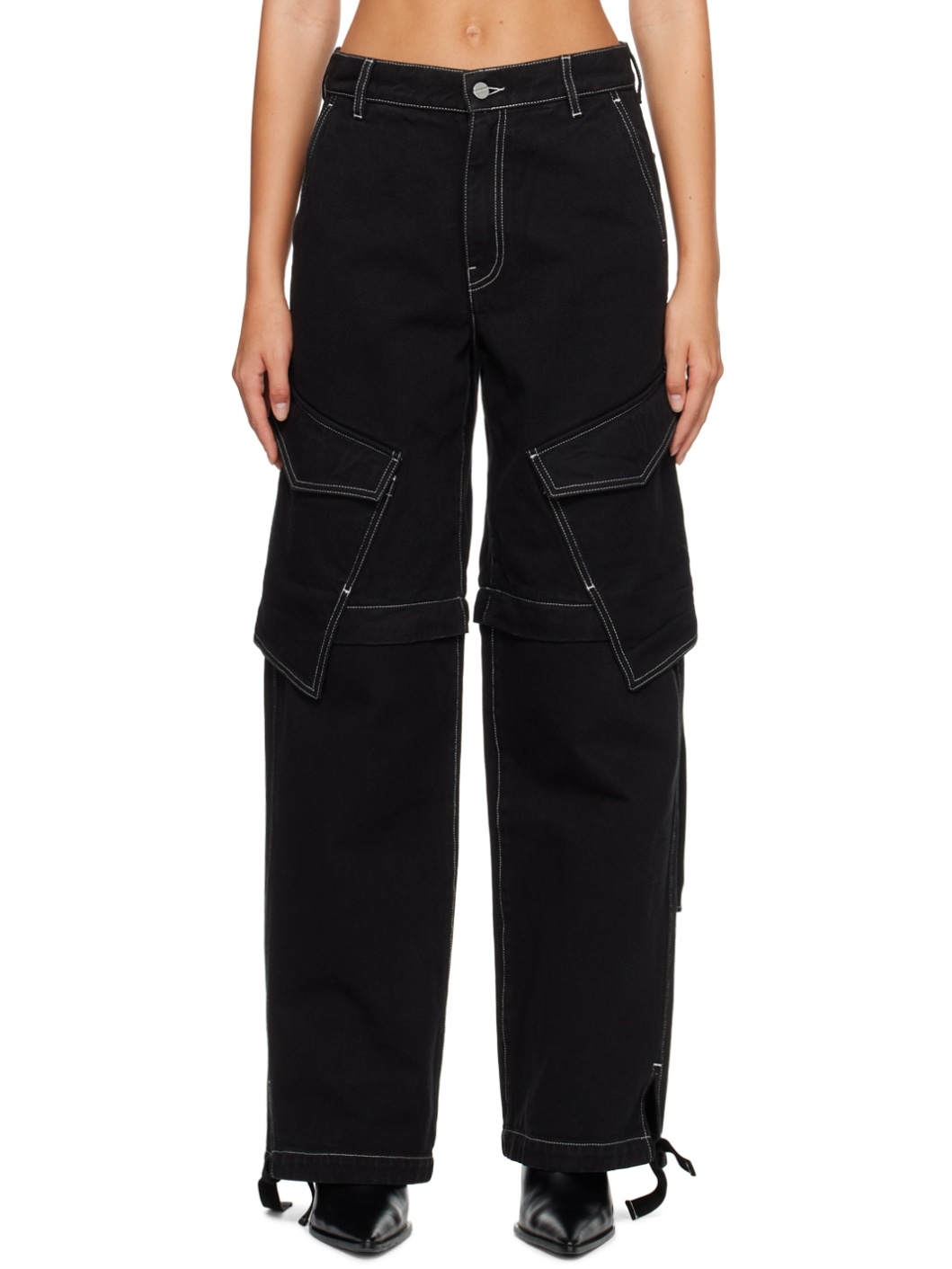 Relaxed-fit straight-leg garment-dyed non-stretch denim jeans. · Belt loops · Four-pocket styling · Zip-fly · Flap pockets at leg · Detachable zip panel at legs for alternate styling · Drawstring at cuffs · Leather logo patch at back waistband · Strap detailing at back · Contrast stitching in white Supplier color: Black 100% cotton. Made in Portugal 232417F069001