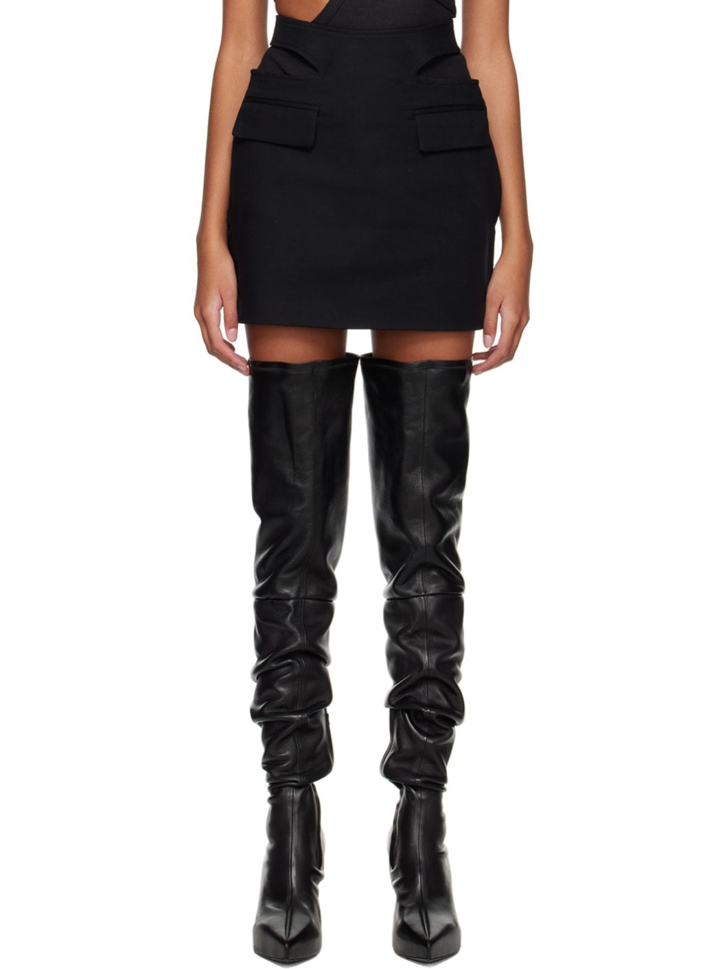 Black Y Front Buckle Miniskirt