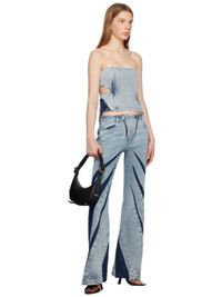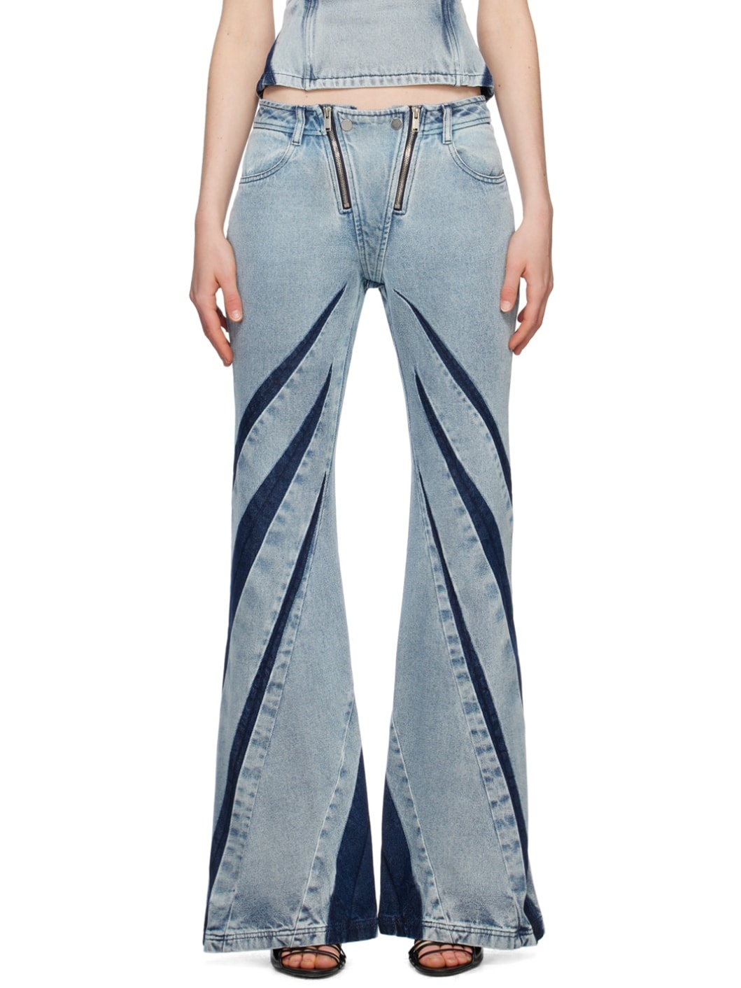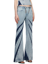 Flared non-stretch denim jeans. Fading and stripes throughout. · Low-rise · Belt loops · Four-pocket styling · Exposed zip-flies · Leather logo patch at back waistband · Silver-tone hardware Supplier color: Indigo Body: 100% cotton. Lining: 50% cotton, 50% polyester. Made in Portugal 231417F069005