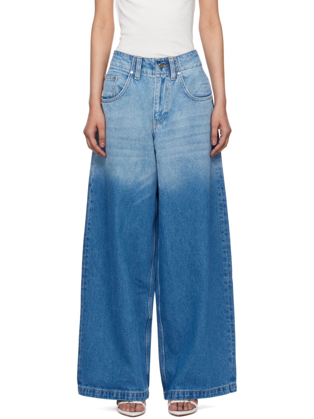 Baggy-fit wide-leg stone-washed non-stretch denim jeans. Gradient fading throughout. · Belt loops · Five-pocket styling · Zip-fly · Logo plaque at back waistband · Mock patch pockets and rivets at back Supplier color: American blue 100% cotton. Made in Turkey 241417F069011